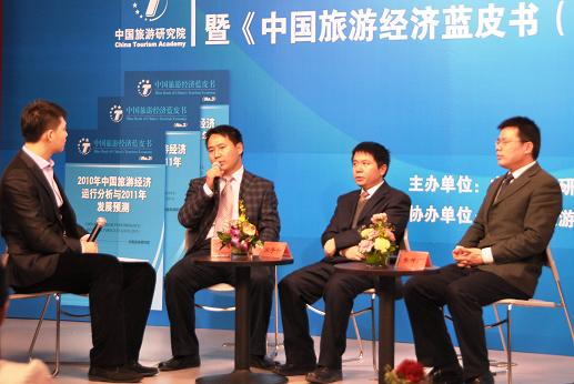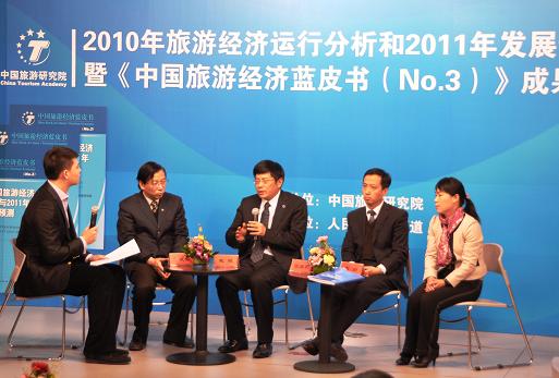 凯发k8国际學(xué)術(shù)委員、北京第二外國語學(xué)院旅游開展研究院院長張凌云教授、中國社會科學(xué)院財政與貿(mào)易經(jīng)濟研究所副研究員宋瑞博士、凯发k8国际產(chǎn)業(yè)所負(fù)責(zé)人李仲廣副教授、區(qū)域所負(fù)責(zé)人馬曉龍博士等參加發(fā)布會,并與戴斌院長、張海燕副司長等一起圍繞"把旅游業(yè)培育成國民經(jīng)濟的戰(zhàn)略性支柱產(chǎn)業(yè)和人民群眾更加滿意度的現(xiàn)代服務(wù)業(yè)的戰(zhàn)略目標(biāo)"及"聚焦2011旅游經(jīng)濟藍(lán)皮書"兩個主題,進(jìn)行了圓桌討論。