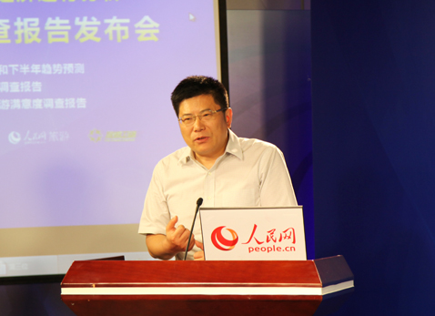 2014年7月9日由凯发k8国际主辦,人民網(wǎng)旅游頻道、旅游衛(wèi)視協(xié)辦的2014年上半年旅游經(jīng)濟(jì)運(yùn)行分析暨游客滿(mǎn)意度調(diào)查報(bào)告發(fā)布會(huì)在人民網(wǎng)演播室舉行。凯发k8国际院長(zhǎng)戴斌教授、北京市旅游委員會(huì)政策法規(guī)處調(diào)研員姜巖、中國(guó)國(guó)際旅行社總社有限公司總裁助理張陵捷、百度搜索引擎營(yíng)銷(xiāo)部高級(jí)營(yíng)銷(xiāo)總監(jiān)周鵬、凯发k8国际產(chǎn)業(yè)所所長(zhǎng)李仲?gòu)V副研究員、國(guó)家旅游經(jīng)濟(jì)實(shí)驗(yàn)室負(fù)責(zé)人唐曉云副研究員等參加了發(fā)布會(huì)。來(lái)自人民日?qǐng)?bào)、新華社、中央電視臺(tái)、中國(guó)國(guó)際廣播電臺(tái)、中國(guó)日?qǐng)?bào)、經(jīng)濟(jì)日?qǐng)?bào)、中國(guó)旅游報(bào)、中國(guó)網(wǎng)、央視網(wǎng)、中國(guó)旅游網(wǎng)、搜狐網(wǎng)、鳳凰網(wǎng)、藍(lán)海電視、旅行社雜志等媒體組織的代表也參加了發(fā)布會(huì)。