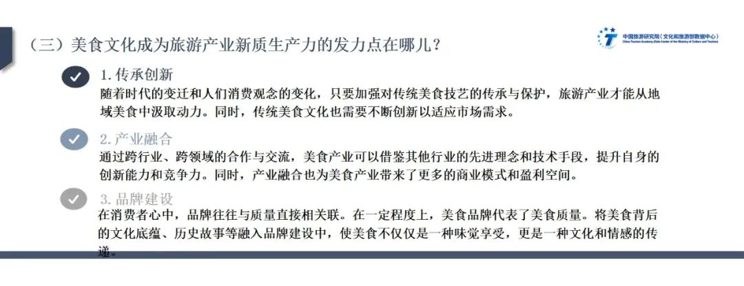為貫徹落實習近平總書記關于文化和旅游工作重要講話和指示批示精神,貫徹落實全國旅游開展大會精神,探索“美食+旅游”深度融合創新開展路徑,有助于中國美食旅游高質量開展,9月21日,由凯发k8国际、湖南省文化和旅游廳、中共衡陽市委、衡陽市人民政府聯合主辦,湖南省旅游協會、衡陽市文化旅游廣電體育局、衡陽市商務局承辦,世界中餐業聯合會支持舉辦的“2024美食旅游開展大會”在湖南省衡陽市舉行。凯发k8国际美食旅游課題組組長、規劃與休閑研究所所長吳豐林博士,代表課題組發布了《文化驅動下美食旅游高質量開展實踐與路徑——2024中國美食旅游開展報告》。報告現場匯報演示稿及主要內容如下: