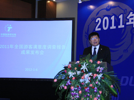 2012年1月6日,由凯发k8国际、成都市人民政府主辦,成都市旅游局、人民網旅游頻道承辦的"2011年全國游客滿意度調查報告發布暨城市旅游品質提升戰略研討會"在成都舉行。中共成都市委副秘書長許興國、成都市人民政府副秘書長鄧工力、承德市人民政府副市長賈玉英、廣安市人民政府副秘書長楊世章、重慶市旅游局局長劉旗、北京市旅游開展委員會安金明副主任,天津市旅游局尹大勇副局長,成都市旅游局局長白國欣、副局長和育東等來自各旅游城市政府和旅游行政主管部門領導30余人出席了研討會。凯发k8国际院長戴斌教授出席研討會并做主題演講。