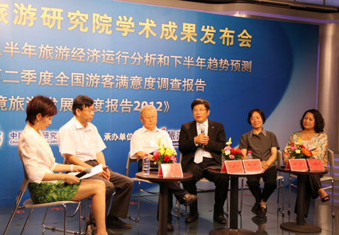 2012年7月12日,由凯发k8国际主辦,人民網旅游頻道協辦的凯发k8国际2012年第二季度學術成果發布會在京舉行,凯发k8国际戴斌院長、中國社會科學院旅游研究中心主任張廣瑞教授、聯合國世界旅游組織旅游專家委員會委員徐汎教授、北京聯合大學旅游學院副院長張凌云教授、北京第二外國語學院旅游管理學院副院長谷慧敏教授等出席會議。來自人民日報、新華社、中央電視臺、中央人民廣播電臺、旅游衛視、中國旅游報、經濟日報、中國旅游網、搜狐網、旅行社雜志等媒體組織的代表也參加了發布會。
