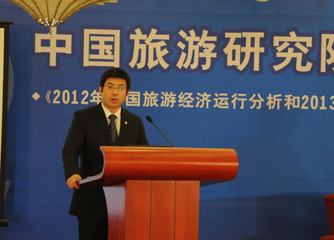 隨后,宋子千副研究員發布中國旅游經濟藍皮書(No.5)《2012年中國旅游經濟運行分析和2013年開展預測》研究成果。研究成果表明,我國旅游經濟繼續保持平穩較快增長,全面完成了年初制定的工作目標。預計2012年全年旅游業總收入為2.59萬億元,同比增長15.1%。三大旅游市場呈"兩增一平"格局,國內、出境旅游保持較快增長,入境旅游基本持平。