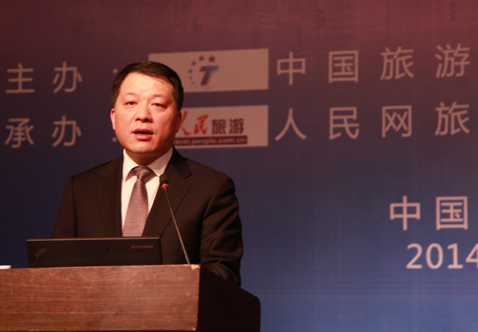 北京市旅游開展委員會副主任安金明以"新型城鎮化助推旅游轉型升級"做主題發言。