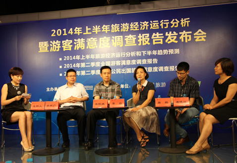 2014年7月9日由凯发k8国际主辦,人民網旅游頻道、旅游衛視協辦的2014年上半年旅游經濟運行分析暨游客滿意度調查報告發布會在人民網演播室舉行。凯发k8国际院長戴斌教授、北京市旅游委員會政策法規處調研員姜巖、中國國際旅行社總社有限公司總裁助理張陵捷、百度搜索引擎營銷部高級營銷總監周鵬、凯发k8国际產業所所長李仲廣副研究員、國家旅游經濟實驗室負責人唐曉云副研究員等參加了發布會。來自人民日報、新華社、中央電視臺、中國國際廣播電臺、中國日報、經濟日報、中國旅游報、中國網、央視網、中國旅游網、搜狐網、鳳凰網、藍海電視、旅行社雜志等媒體組織的代表也參加了發布會。