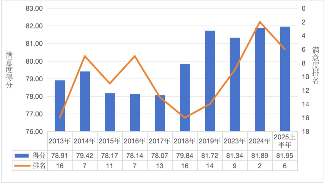 圖 大陸居民赴臺灣旅游者滿意度(2013-2025上半年)