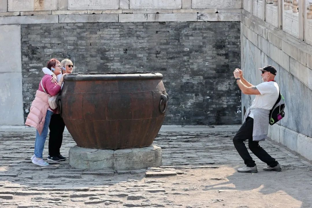 2025年3月,外國游客在故宮拍照。視覺中國圖