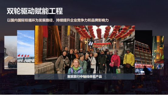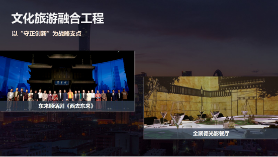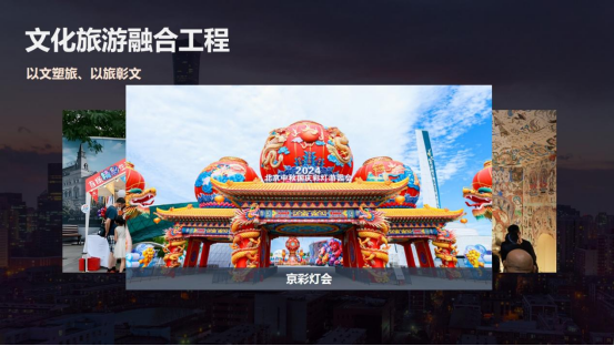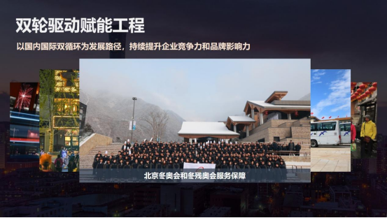 四是雙輪驅動賦能工程。集團以國內國際雙循環的開展路徑,持續提升了企業競爭力和品牌影響力。在國際市場方面,集團在服務保障國際活動的同時,順利獲得首旅集團高端服務體系向世界展示了中國服務。在高水平對外開放的宏觀政策指引下,我們還針對入境團隊設計了跨區域的文旅項目,串聯了中華傳統文化體驗與現代消費場景,將政策優勢轉化為企業的開展優勢。在國內市場方面,集團持續創新消費場景。在北京中軸線申遺成功后,首旅旅行推出了深度體驗產品。最近,我們正在謀劃和策展中軸線博物館,不斷做強首店經濟,引領環球影城等國際IP。王府井喜悅開設了71家首店店鋪,大力開展夜間經濟。環球影城城市大道打造一站式餐飲娛樂中心,入選了文旅部國家級夜間文化和旅游消費集聚區。